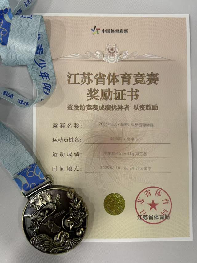 在2025年江苏省拳击锦标赛中,2位小选手同样大放异彩。来自城北中学的顾丽娜同学发挥极其出色,以绝对优势一举夺得冠军;来自新镇中学的戴旖宸同学也表现优异,成功收获一枚季军。他们共同展现了昆山青少年拳击的整体实力和深厚底蕴。