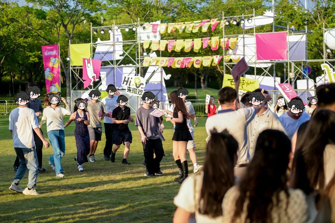 夜幕低垂,但青春的热力远不止100!活动现场还开展了互动游戏,催化了数份默契的连接。超大扑克牌、背对背挑战、歌曲精彩……清风裹挟着水汽轻拂面庞,低声的交谈、会心的笑声、不经意的眼神交汇,在微凉的夜色里触摸着青春的心跳