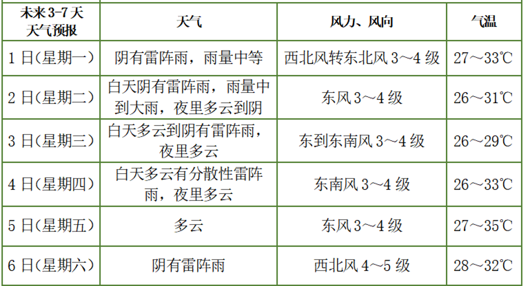 雷雨时短时阵风7~9级