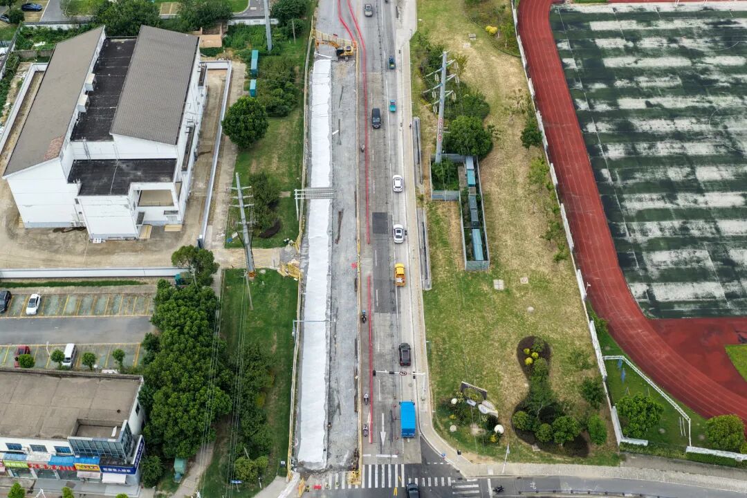 项目细化以“日”为单位的施工计划,提前制定应急保畅预案,并通过“昆山市交通运输局”“昆山交警”“周市发布”等平台及时发布出行提示。同时,与高德地图合作引导车辆分流绕行,有效缓解施工期间交通压力。施工期间恰逢高温和强对流天气多发,项目组紧盯天气变化,“抢晴天、战雨天”,合理调整作业内容,强化施工安全防护,全力保障工程进度与质量。