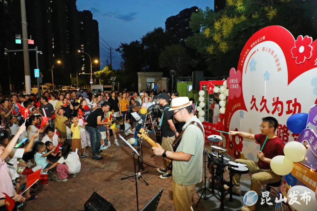 “五星红旗,你是我的骄傲,五星红旗,我为你自豪……”一曲《红旗飘飘》,瞬间点燃了现场氛围。台下,社区居民李阿姨跟着节奏轻轻哼唱,眼神里满是激动:“每次听这首歌都很激动,为我们国家现在的发展感到自豪!”歌手们还不时与社区音乐爱好者们互动合唱,《领航》《我和我的祖国》等一首首经典曲目轮番上演,熟悉的旋律在广场上空回荡,引得众人纷纷拿出手机记录这动人时刻。