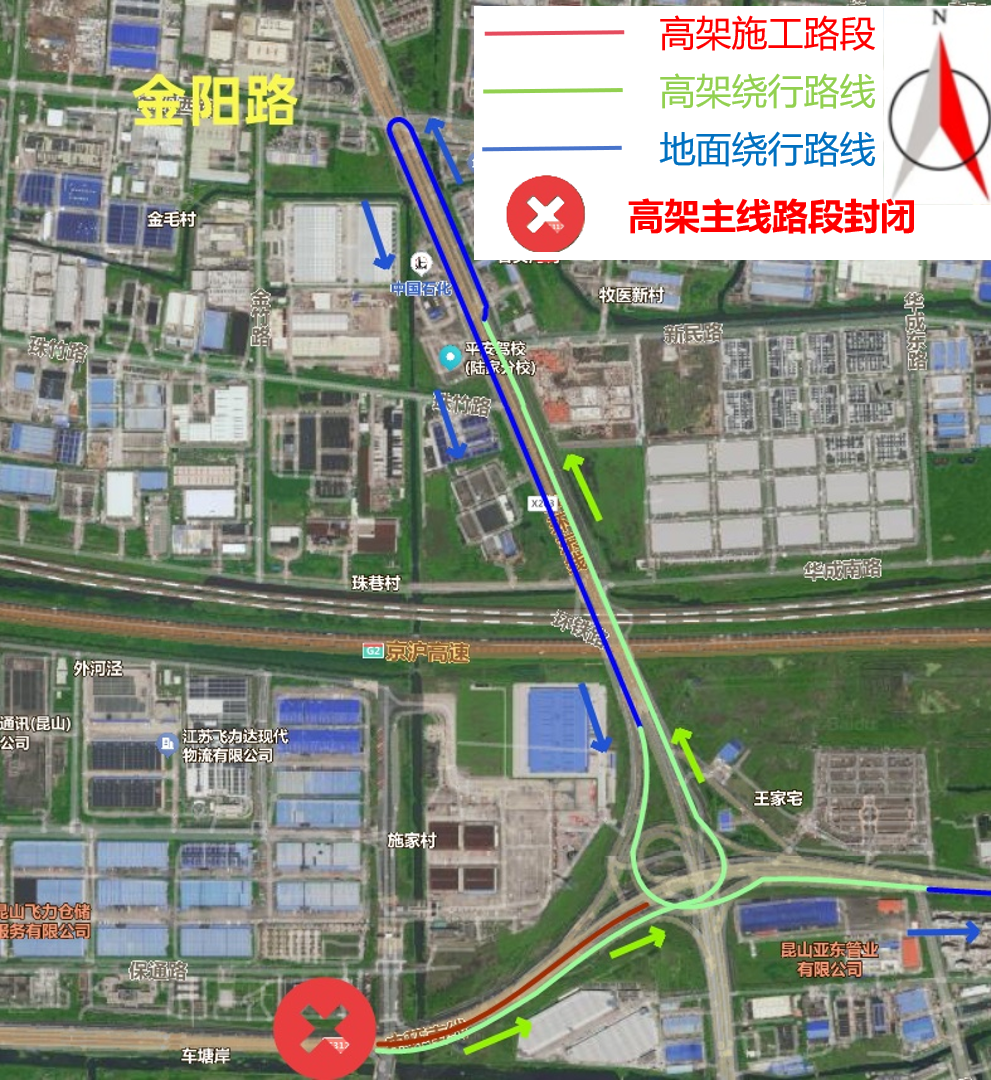 施工期间将封闭中环东线(南向北)方向京沪高速南侧第一汇入口,车辆可经第二汇入口驶入。