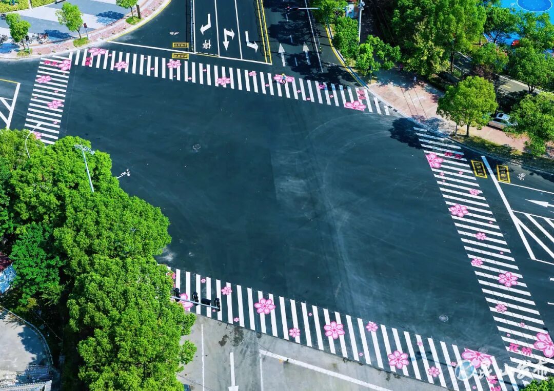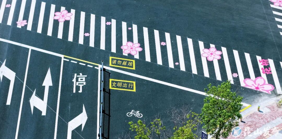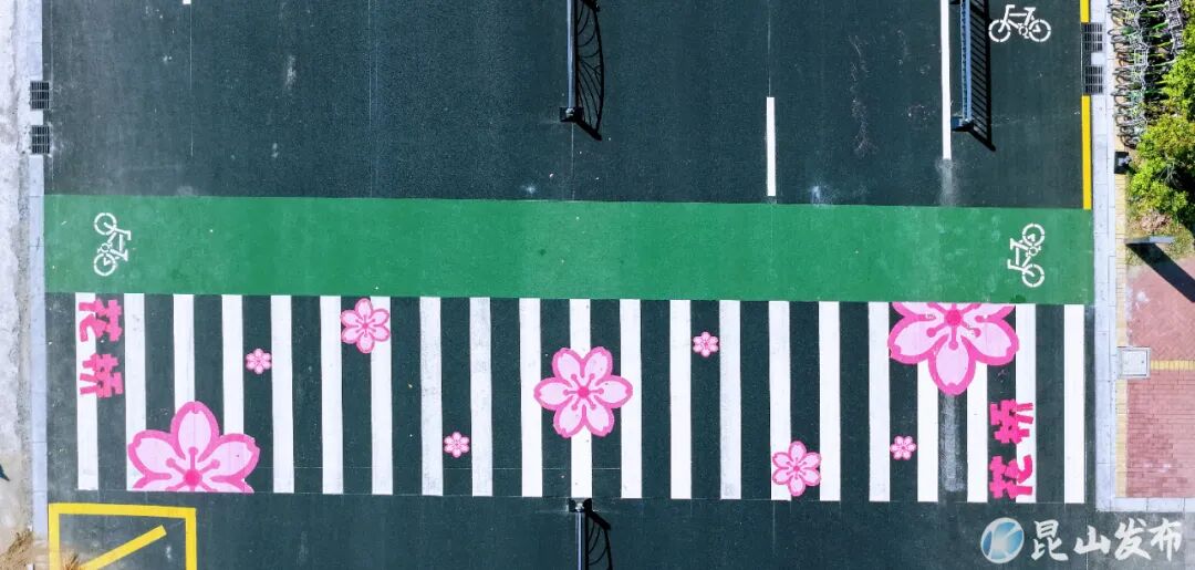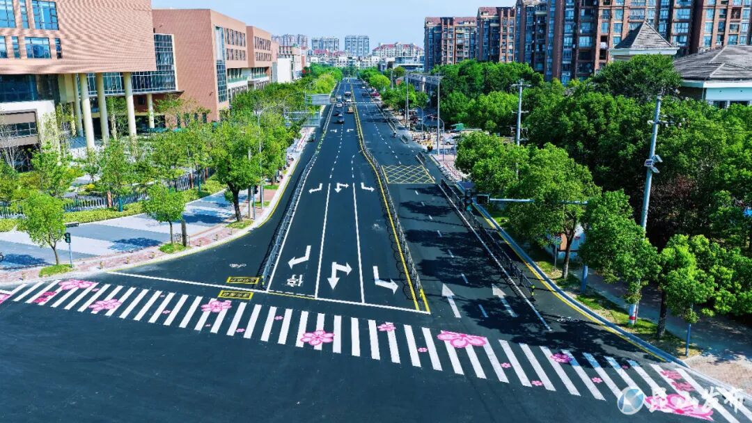 这条路改造后宽了很多,也很漂亮,让人眼前一亮。人行道上还画了花,很符合周边学校的审美,更像是一路生花。上下班开在这样的道路上,心情都好了。
