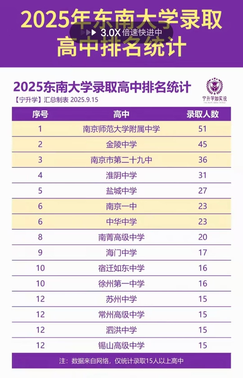 2025年,东南大学,生源高中Top15,某地遥遥领先 [复制链接]