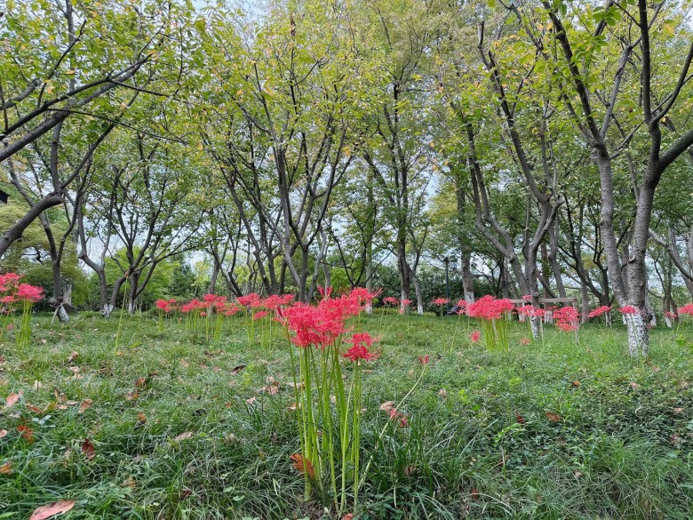 公园的彼岸花开的很多很美,就是有种凄美感。