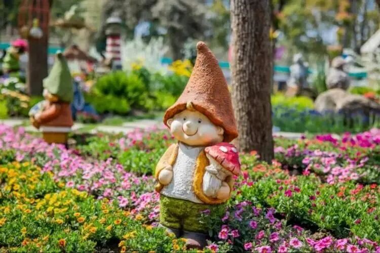 园内的小火车缓缓穿行于花海之间