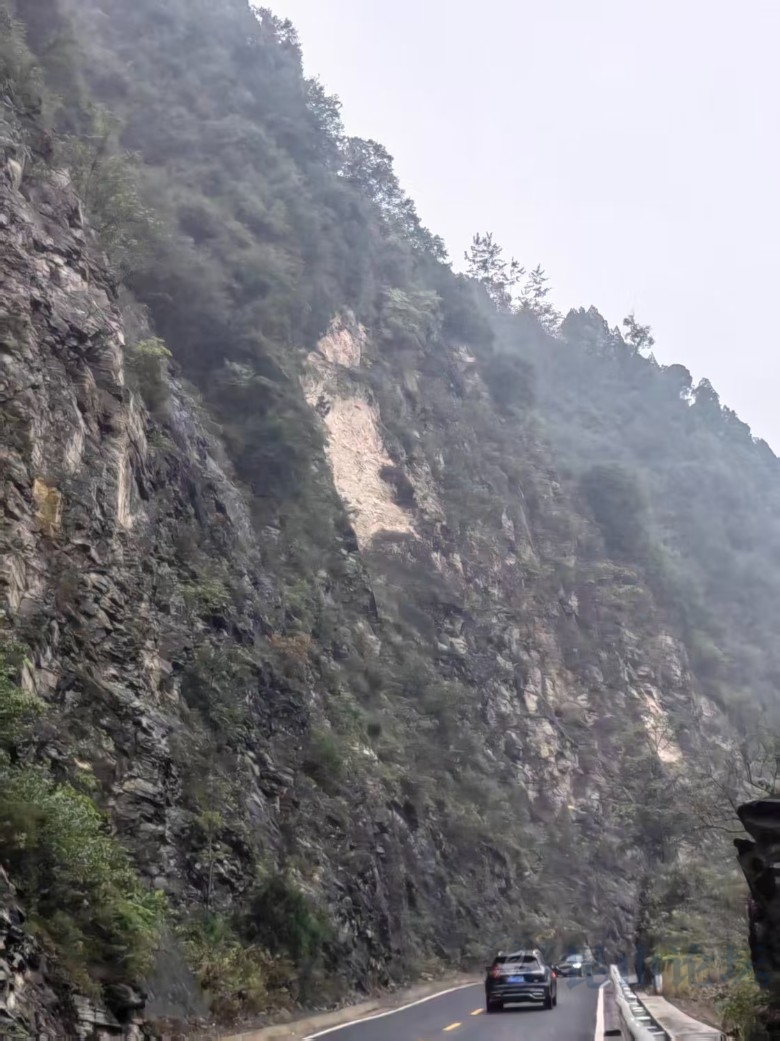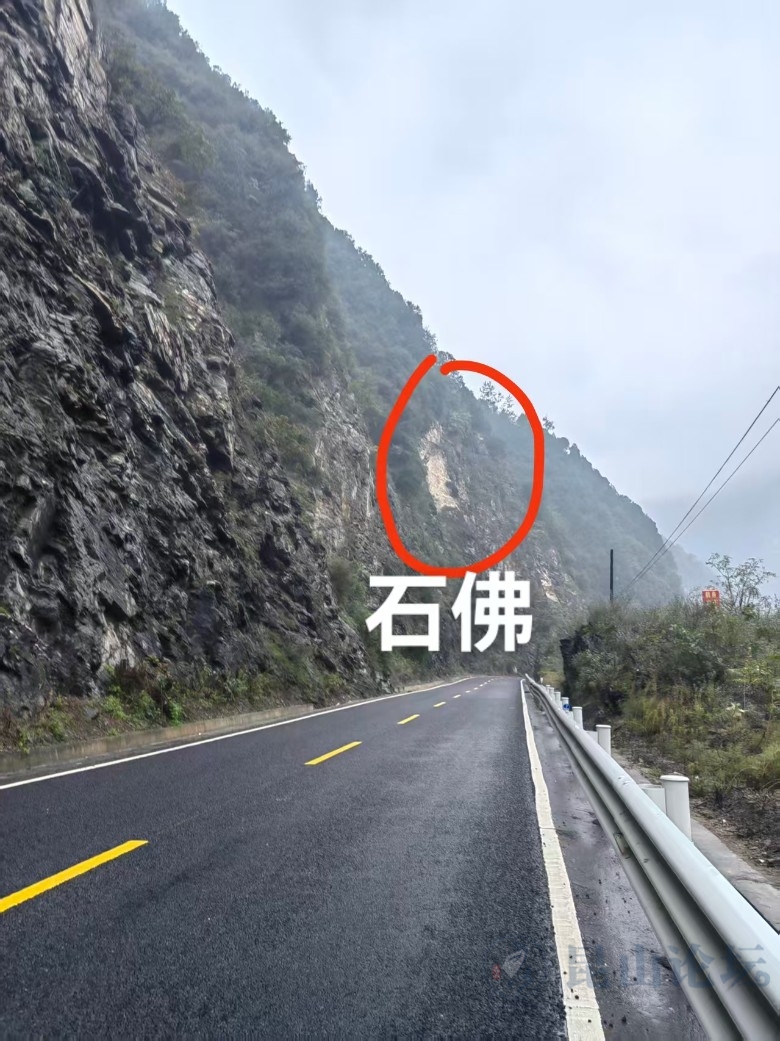 2025年国庆假期回乡探亲,10月2日傍晚在驱车回村的路上,眼前的一处残恒绝壁映入我的眼帘,我放慢车速,抬头仰望,一个旷世绝伦的画面顿时在我的大脑中浮现,随着车轮的慢步向前,距离由远至近,这种立体的画面在我的脑海中越来越明显,这不就是一尊面壁佛首吗?在回村的乡间小路上,我甚至觉得是不是自己产生了一种莫名的幻觉。 无意中的发现使我心中产生了很多的不确定性,随着夜色降临,那种神秘的色彩使我彻夜未眠! 陕西省宝鸡市西部山区是秦岭连接陇山的过渡地段,也是阻隔在陕西宝鸡和甘肃天水之间的天然巨大障碍。在历史上,它曾经成为兵家必争之地。诸葛亮六出祁山,实际到达地点是天水境内,然后想要到达关中就必须穿过这一片难以翻越的连绵山脉。据考证,《三国演义》里著名的诸葛亮挥泪斬马谡的故事,故事中马谡失街亭的“街亭”就在这一带,至于具体地点现在则难以认定。 过去,这个地区交通非常不便。在21世纪之前,这个地带只有陇海铁路一条现代交通通道贯穿东西,没有公路。汽车要从宝鸡到天水的话,要么走北线从陇县绕行,要么走南线从陕西凤县和甘肃两当绕行。到了21世纪初,先是修建了310国道,终于有一条高等级公路打通了宝鸡和天水之间的交通阻隔,后又修建了宝天高速公路(属于连霍高速公路其中一段)。这两条公路的修建使得西部山区不再与世隔绝,极大地促进了该地区经济的发展。然而,今天在这里所说的,发现到天然石壁佛首,就是位于陕西和甘肃两省交界的核心位置,甘肃省天水市麦积区东岔镇榨林村和陕西省宝鸡市拓石镇杨家川村南桥头310国道往东约300处。 10月3日一大早,为了验证我是否进入了一种神奇的幻觉世界,我驱车前往,在不远处掉头,然后顺着昨日的行车轨迹,重复着昨日的观望的动作、角度,我十足的确定,这就是石壁佛首!