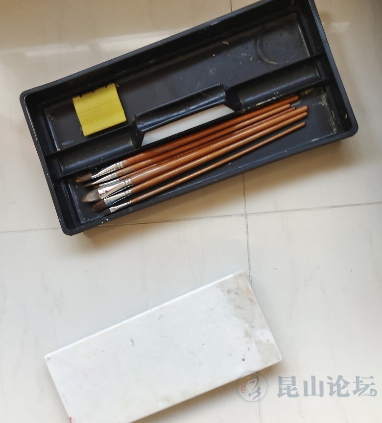 18色水彩颜料 还剩80%左右,加上6支水彩笔,一个颜料盒