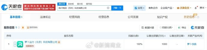 航行锐启(苏州)科技有限公司成立,法定代表人为李英照,注册资本1000万人民币,经营范围包括网络文化经营、第二类增值电信业务、互联网信息服务等。股东信息显示,该公司由萝卜快跑关联公司萝卜运力(北京)科技有限公司全资持股。