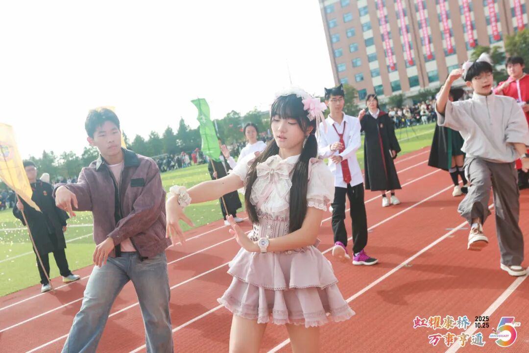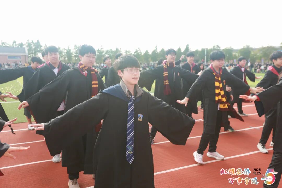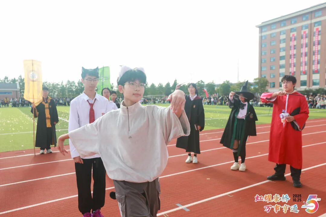 彩妆**队伍宛如一幅流动的画卷。各班学子盛装登场,载歌载舞而来,为观众献上一场场五彩斑斓的视觉盛宴。高中部的青春洋溢、初中部的朝气蓬勃、小学部的天真烂漫、幼儿园的稚拙可爱,共同绘就康桥最美的风景线。