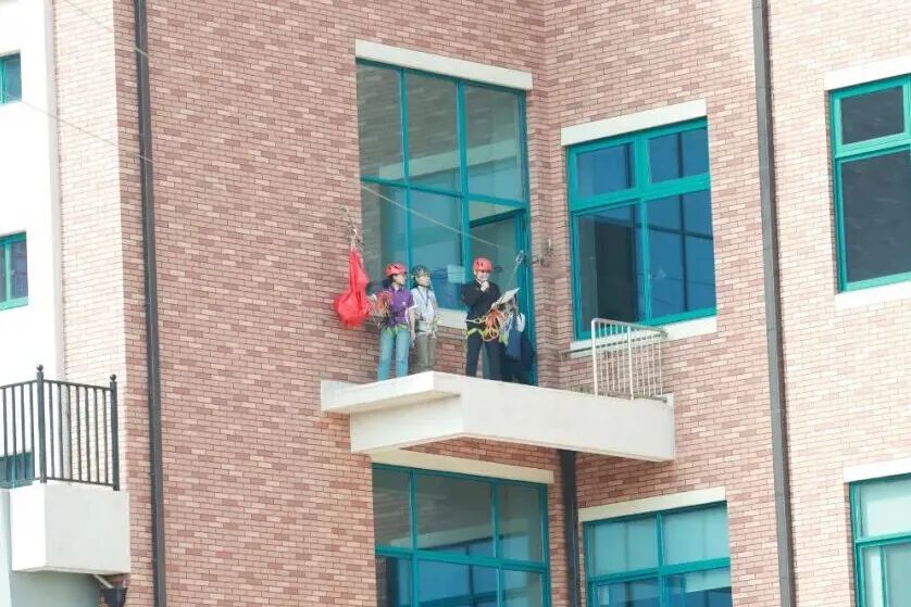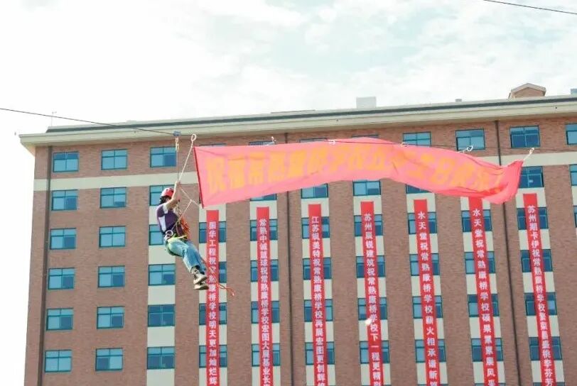 常熟康桥学校校区校长张勳诚从探索设施之一的大溜索项目起点出发、“飞”跃操场,以最特别的方式为康桥庆生。
