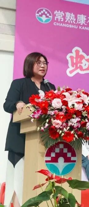 经开区党工委委员、管委会副主任、碧溪街道党工委书记顾晓丹女士(右二)充分肯定了康桥扎根常熟以来,秉持先进的教育理念、融合两岸教育精华,以开拓的国际视野和特色的教育路径,取得了令人瞩目的办学成果,表达了对学校未来发展的美好祝愿。