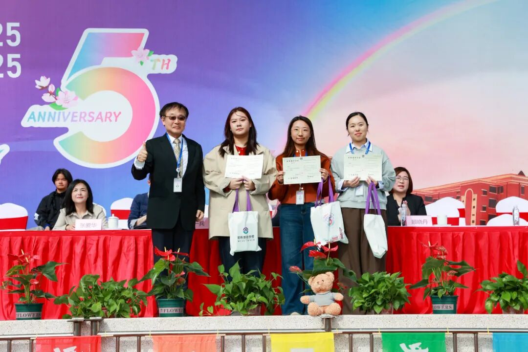 常熟康桥学校校区校长张勳诚先生(左一)回顾了过去四年全体师生的进步与杰出表现,表达了对常熟康桥未来的期许。