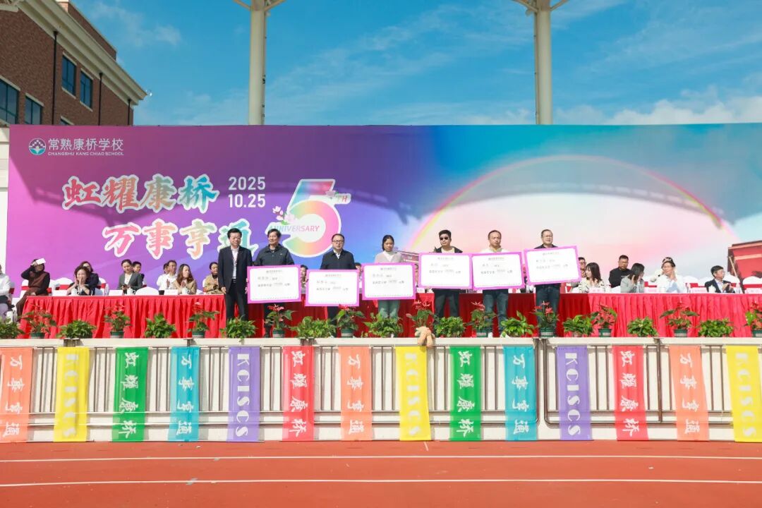 10月25日(周六),常熟康桥学校五周年校庆典礼在校区内圆满举行。全体师生、家长代表及社会各界贵宾齐聚一堂,共同见证这一喜庆时刻。经开区党工委委员、管委会副主任、碧溪街道党工委书记顾晓丹女士、常熟市人民政府教育督导室原副主任潘一兵先生、常熟市教育局教育科副科长张爱华女士、经开区(碧溪街道)社会事务管理中心教育体育科负责人顾莹女士、常熟市教育局教育科副科长费学锋先生、经开区(碧溪街道)社会事务管理中心民政科科长、常熟市碧溪街道经开区慈善会秘书长邓鸣亚女士等领导莅临现场,共襄盛会。