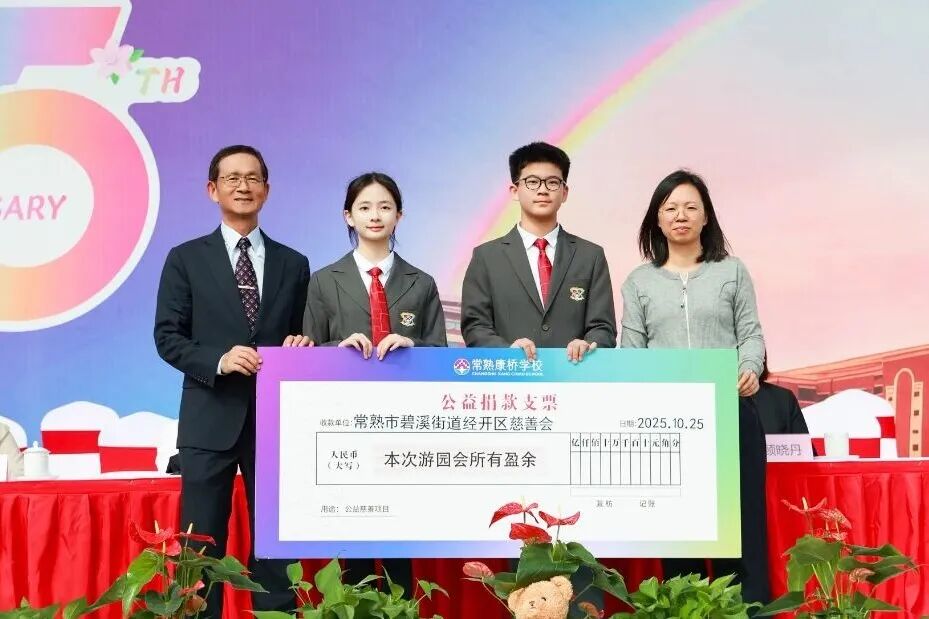 校庆日不仅传递爱与温暖,也试图教会孩子们责任与担当。学生、家长及老师合力进行商品贩卖,由李万吉董事长作为校方代表,将活动盈余全数捐赠给常熟市碧溪街道经开区慈善会用于公益事业。善行虽小,却有千钧之力。