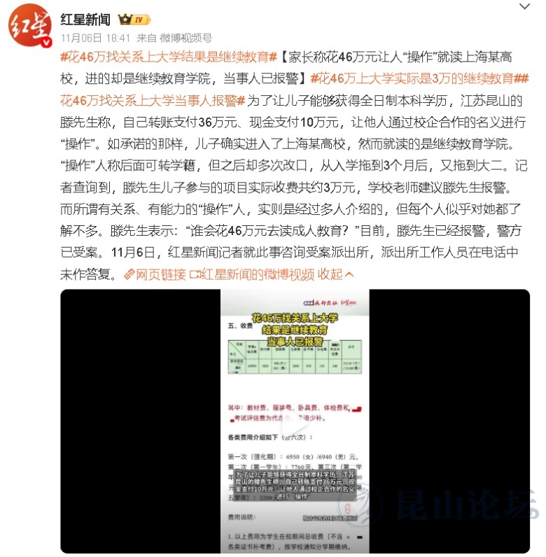 [百姓话题]这不是人傻钱多嘛,昆山家长花46万找关系上大学结果是继续教育 [复制链接]