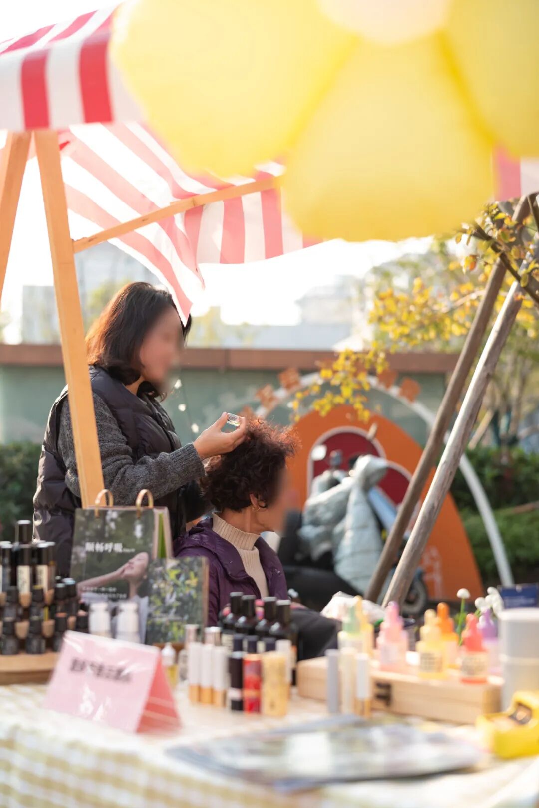 市集美食摊位丰富,公益很有温度,是邻里的"温暖角落",老人带着孩子挑选零食,年轻人和摊主唠着家常,欢声笑语萦绕其间。