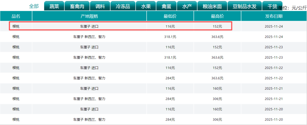 ▪ 11月3日,车厘子的批发价格在80-130元/斤;