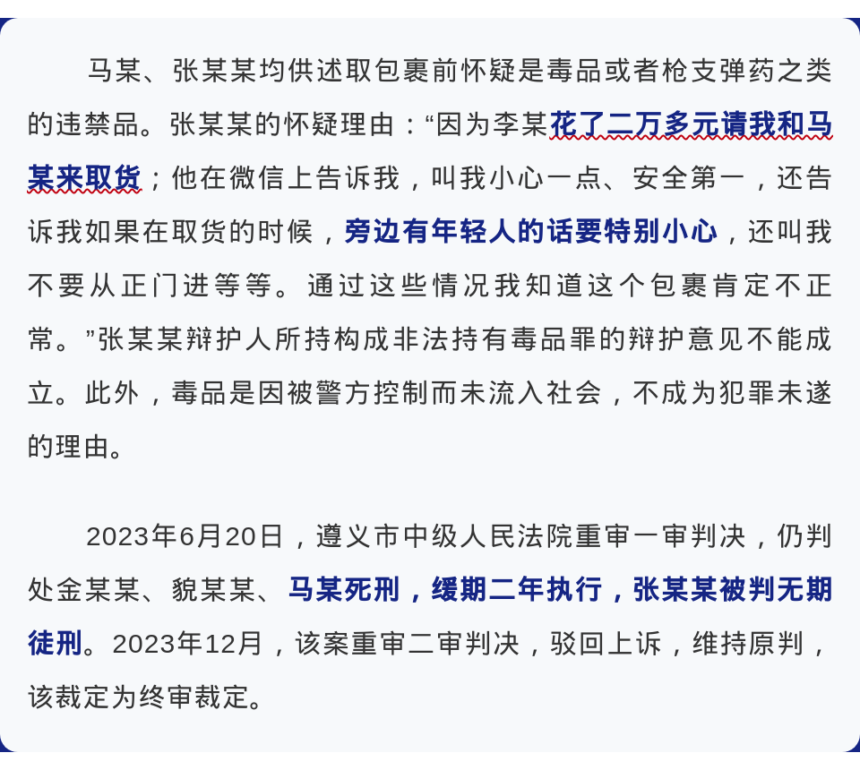 张某某以不知所提取货物是毒品、不是主犯、不构成运输毒品罪、量刑过重等为由提起上诉,马某以“被李哥骗,不知运输的是毒品,量刑过重”为由提起上诉。