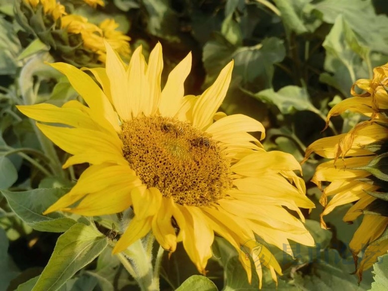 昆山花桥站外的向日葵很美,小蜜蜂辛勤的采蜜!