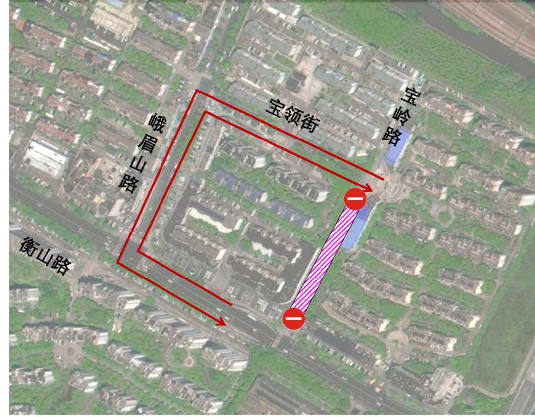 宝岭路(衡山路-宝岭街)双向机动车道及人行道全部封闭施工,禁止车辆、行人通行。