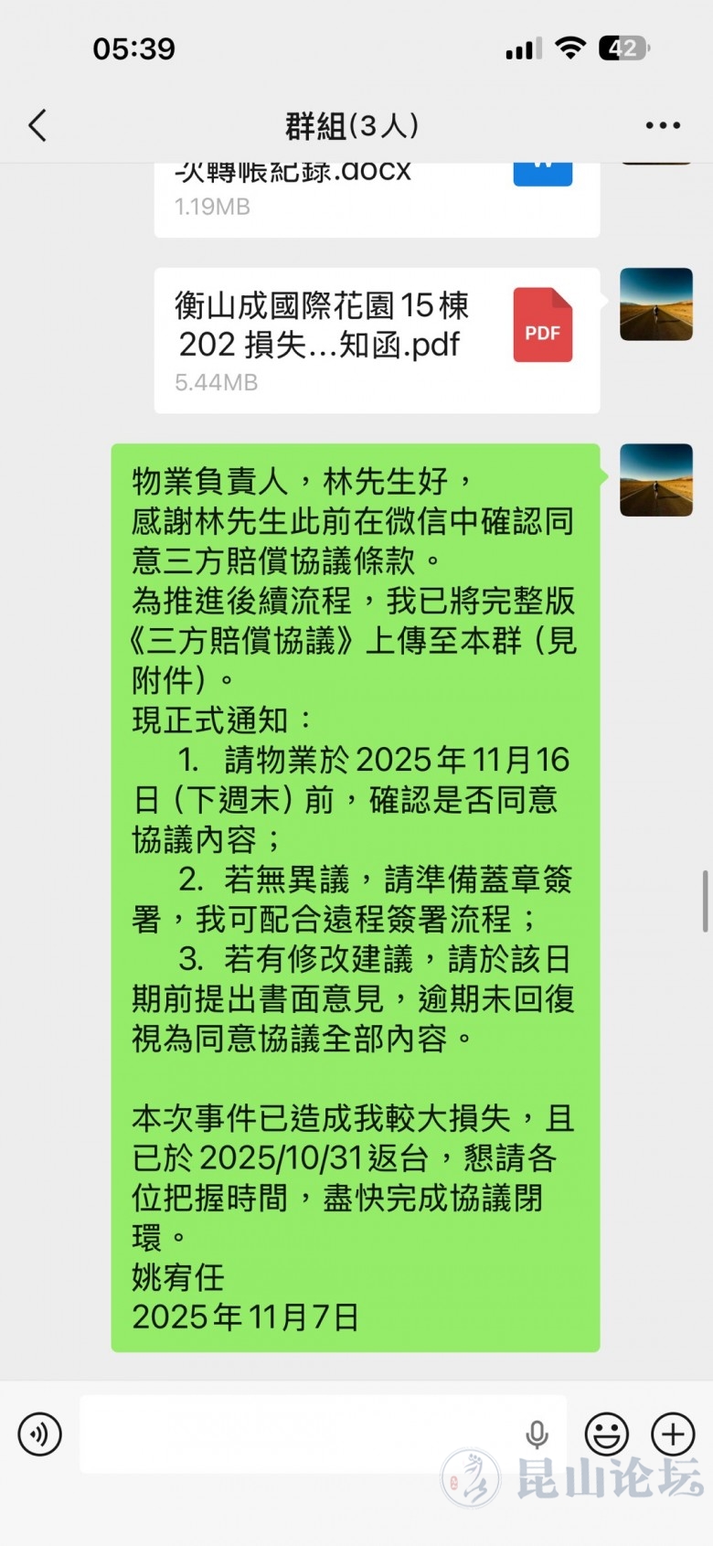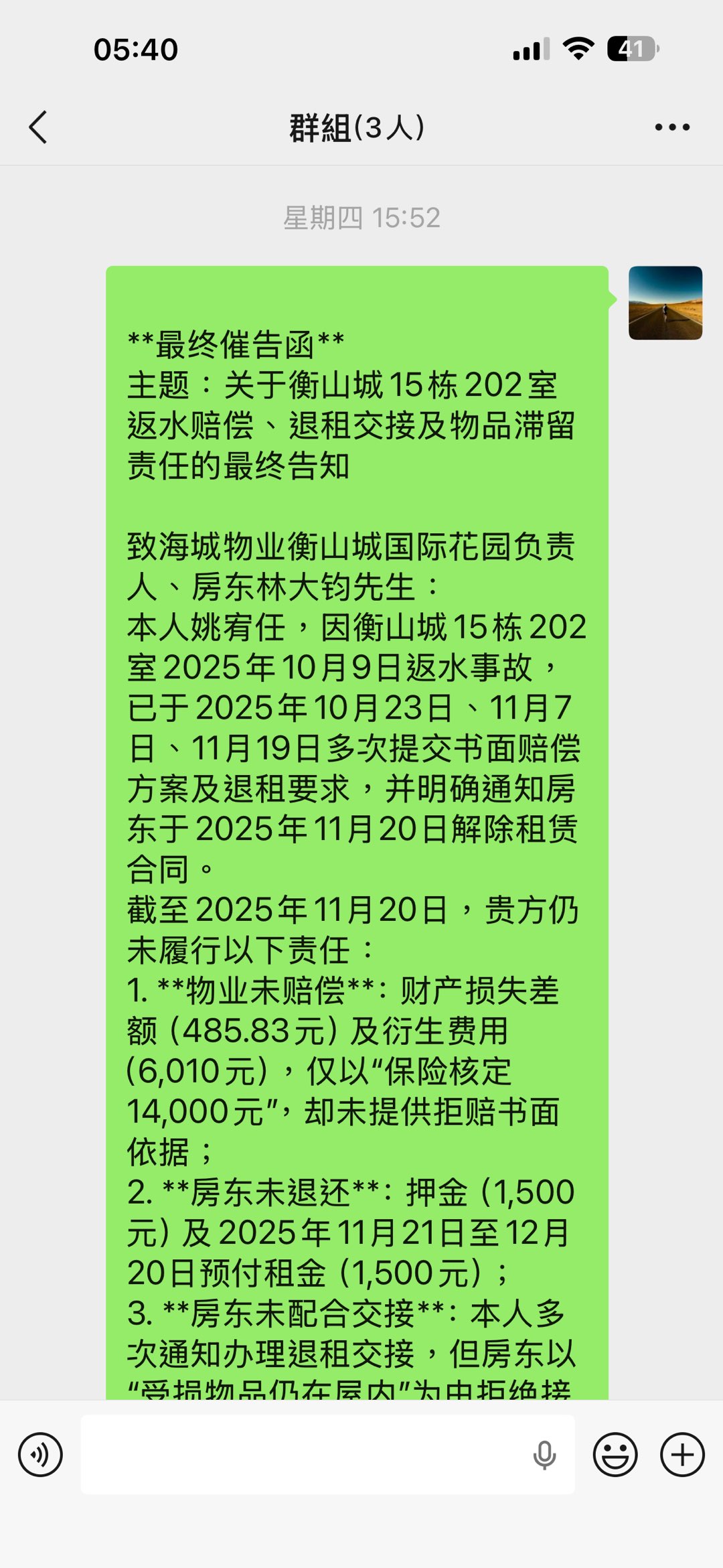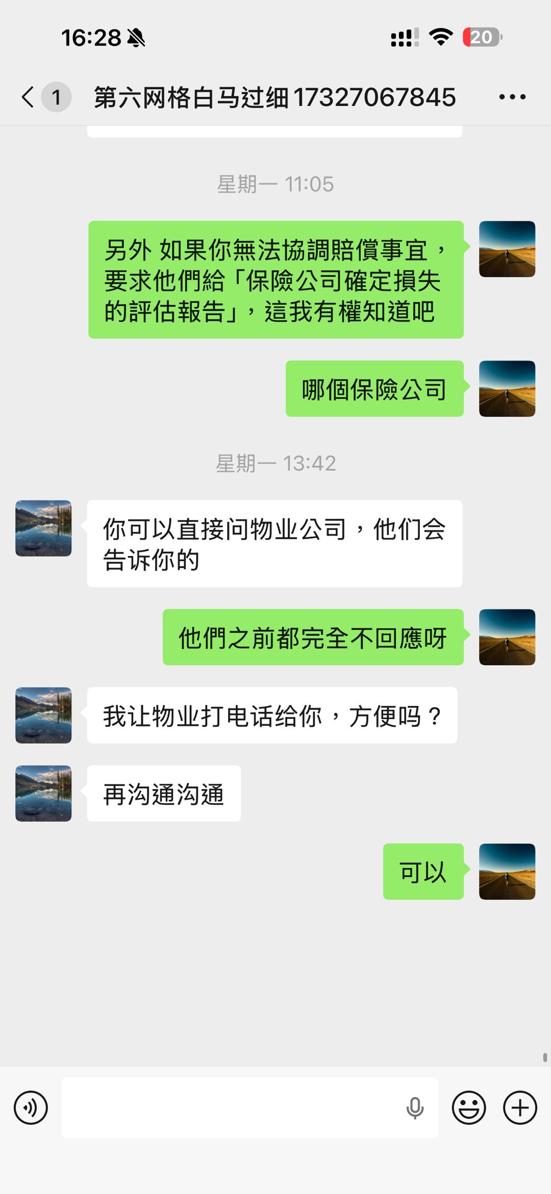 我10月23号正式把损失清单和赔偿函递给他们,结果物业就是“打太极”,避重就轻,啥实质回复都没有。11月14号他们突然通知说“保险只赔1.4万”,剩下的差额不解释、也不沟通,之后干脆不理我了。