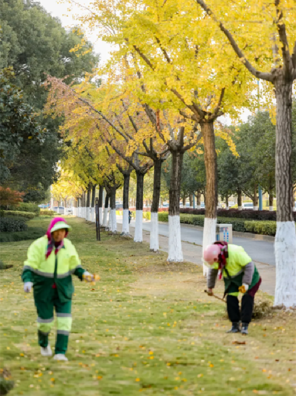 对保留落叶的景观区域采取定人定时定岗“捡拾保洁”,及时清除落叶中的垃圾。在确保整洁与安全的前提下,适度延后清扫时间,既留存落叶的自然印记、传递城市温度,也为市民打造一个个绝美的打卡背景。