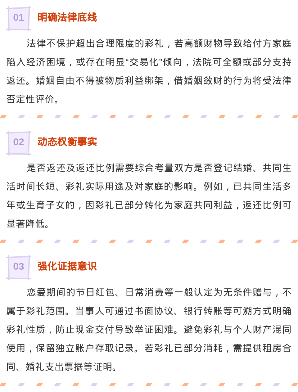 2025年5月,双方再次发生矛盾,结束恋爱关系。后阿强以要求阿珍返还见面礼钱、春节期间收到的红包以及购买的两部手机为由,将其诉至天津市第三中级人民法院。