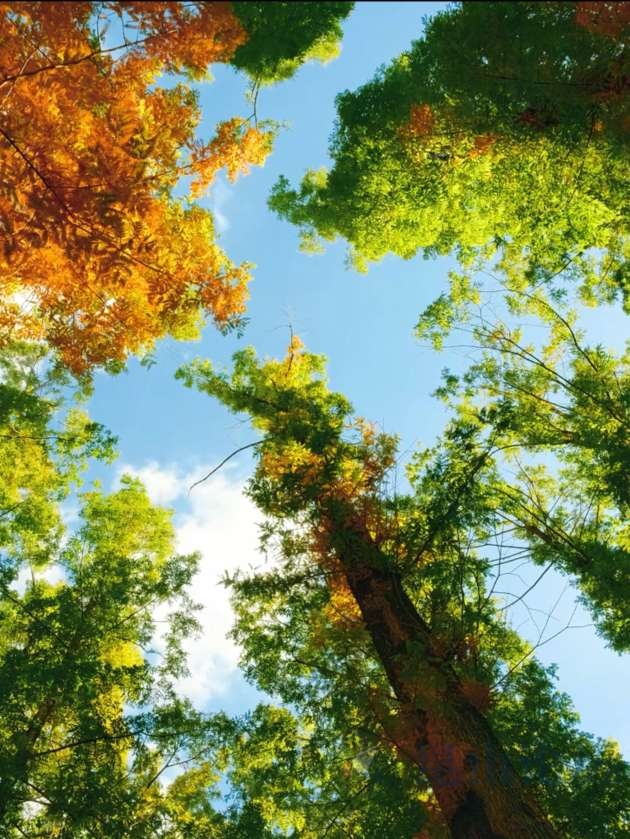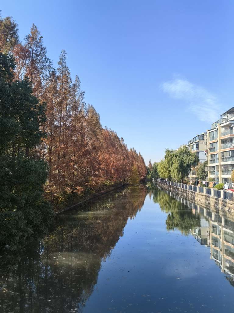深秋的风裹着阳光把亭林园里的水杉,染成了暖橘色