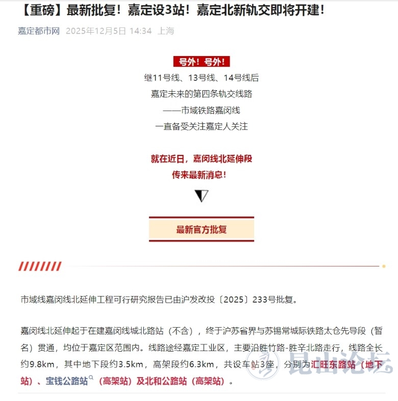 市域线嘉闵线北延伸工程可行研究报告获批,设3站。批文中出现几 ..