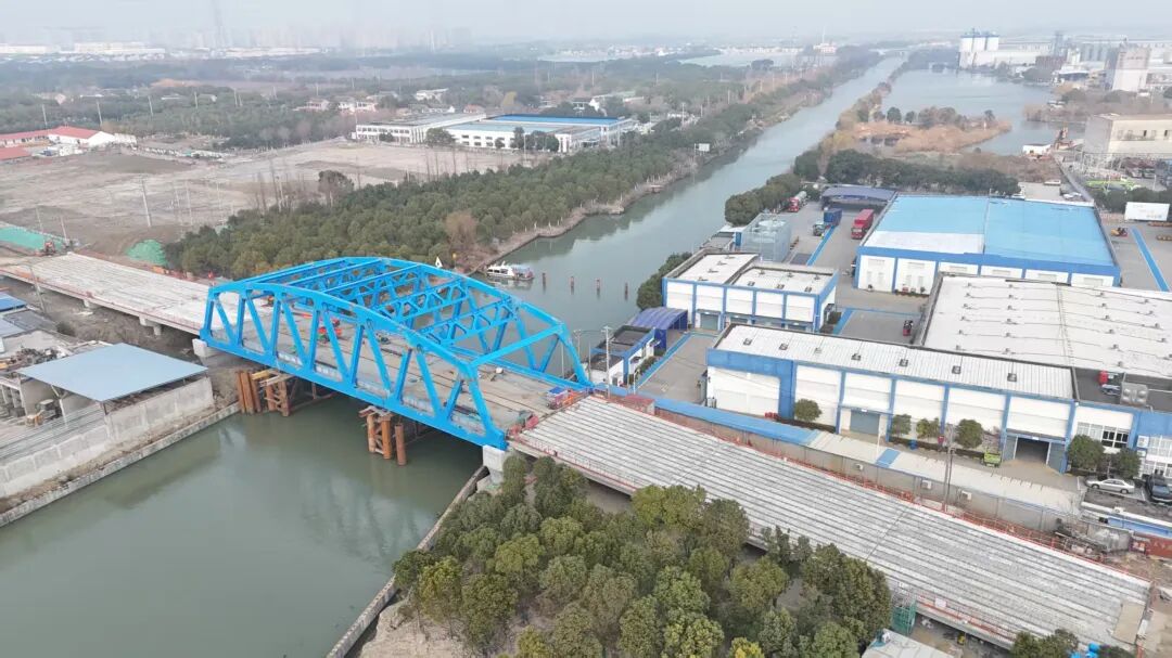 李家嘴主桥采用简支钢桁架梁结构,跨径组合为(4×20)+62+(3×20)m,主桥钢桁架总长62米、总重约817.9吨,施工中采用600吨浮吊分三个阶段实施分节吊装,确保了大型构件安装的安全与精准。
