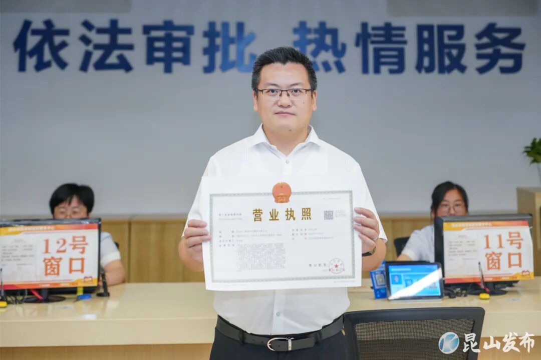 ▲邵村社区党委书记从镇便民服务中心领取了昆山首张社区企业营业执照