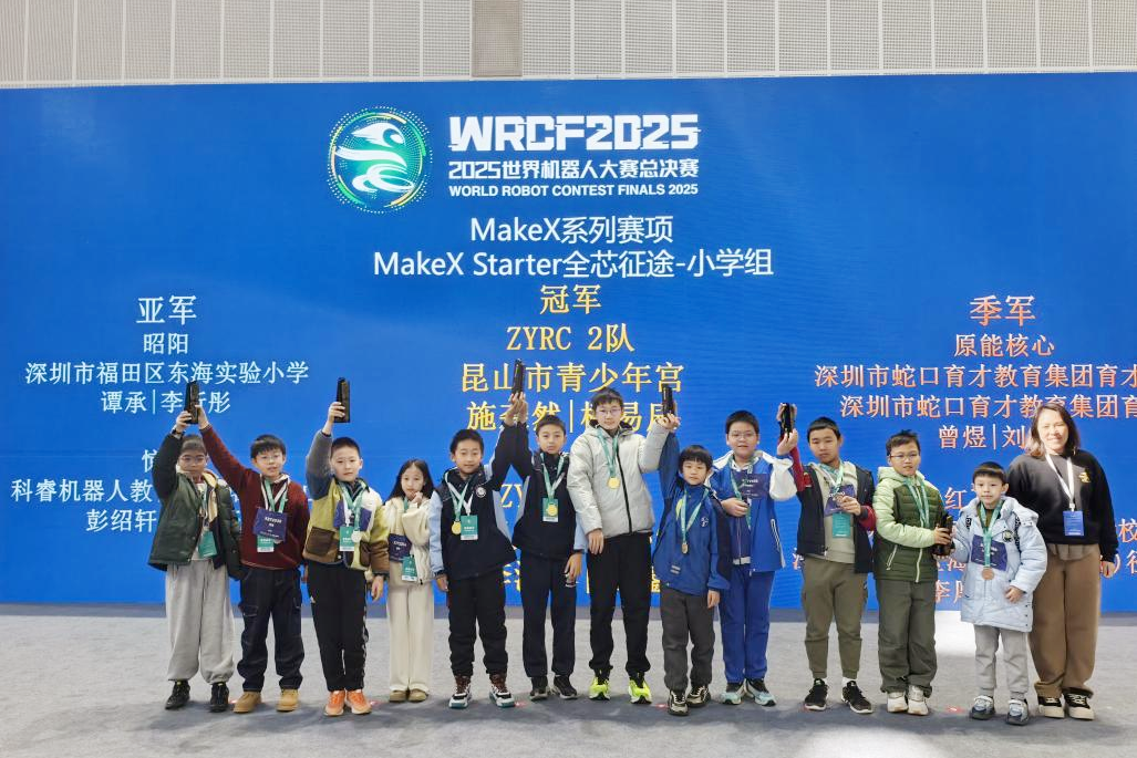 “入围总决赛难度很大,需要在地级市以上机器人锦标赛中获得冠、亚、季军才有资格。”昆山市青少年宫指导老师夏雪勇说。2025年全年,青少年宫共带队参加北京、苏州、镇江等8个省市级锦标赛,共斩获6个冠军、3个亚军,其中潘俊杰、刘子山斩获2025WRCT世界机器人大赛苏州市选拔赛对应组别冠军;柯易辰、施森然获得2025世界机器人大赛青少年机器人设计大赛江苏省选拔赛对应组别冠军,均以绝对实力进入总决赛。