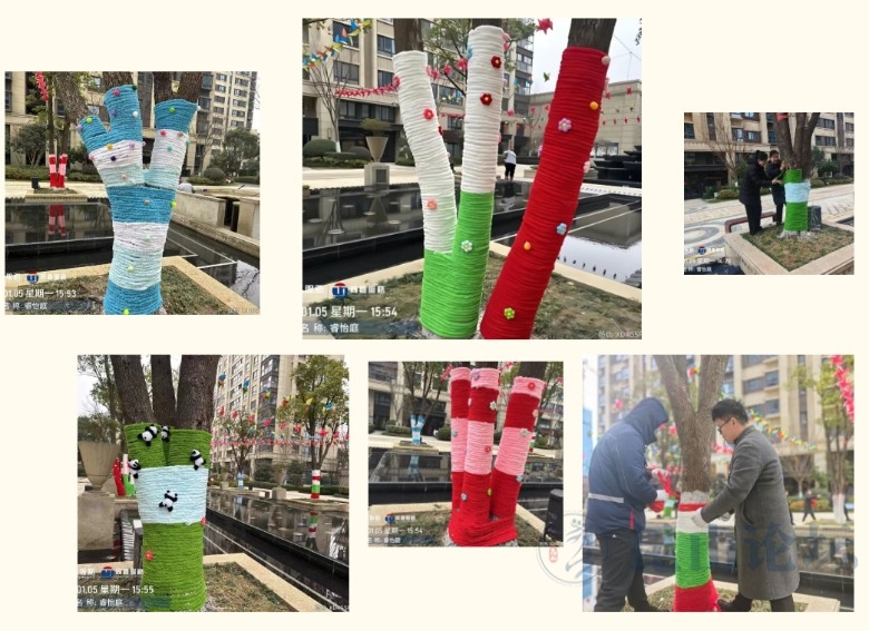 睿怡庭的“微景观”。睿怡庭服务中心搭配小型灯带装饰等元素,夜间点亮更具氛围感,成为冬日里的温馨亮点。这些精心改造的树圈,不仅改善了园区绿化环境,更优化了公共空间的使用效率,让自然与生活无缝衔接,彰显出精细化治理的巧思。