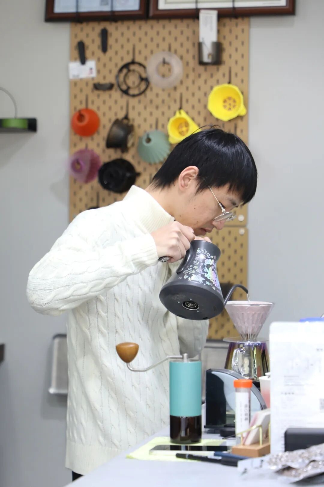 “磨豆的粗细、烘焙的风量、冲煮的水温,每一个细节都能改变一杯咖啡的风味。” 刚忙完一波烘焙测试,钱彬渊的手上还带着淡淡的咖啡香,谈起与咖啡的结缘,他笑着打开了话匣子,“2018年开始自己摸索烘焙,一开始对着机器反复试,调火候、控风量、卡时间,光打样就耗了不少豆子,慢慢才摸出控风烘焙的门道。”