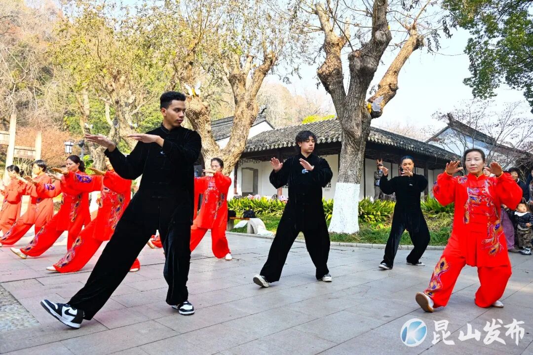 清晨的亭林园,晨光透过千年古银杏的枝叶,洒在青石板路上,几位长者在树下练太极,动作舒缓如云卷云舒。作为中国武术爱好者,迈克尔・勒自然地加入其中。老师傅轻声指点:“放松肩,沉下气,太极不是表演,是聆听身体的声音。”这个宁静的清晨,在舒缓的一招一式中,博主们与老师傅完成了一场跨越文化的对话。