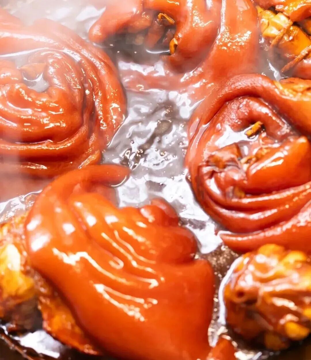 这炖煮的功夫最是关键,少则三小时,多则半天,火要小,汤要滚而不沸,让香料的味道慢慢渗入肉质肌理。炖到中途,还要给蹄髈翻个身,确保每一寸皮肉都裹满酱汁。待锅里的汤汁变得浓稠,用筷子轻轻一戳便能穿透皮肉时,才算大功告成。