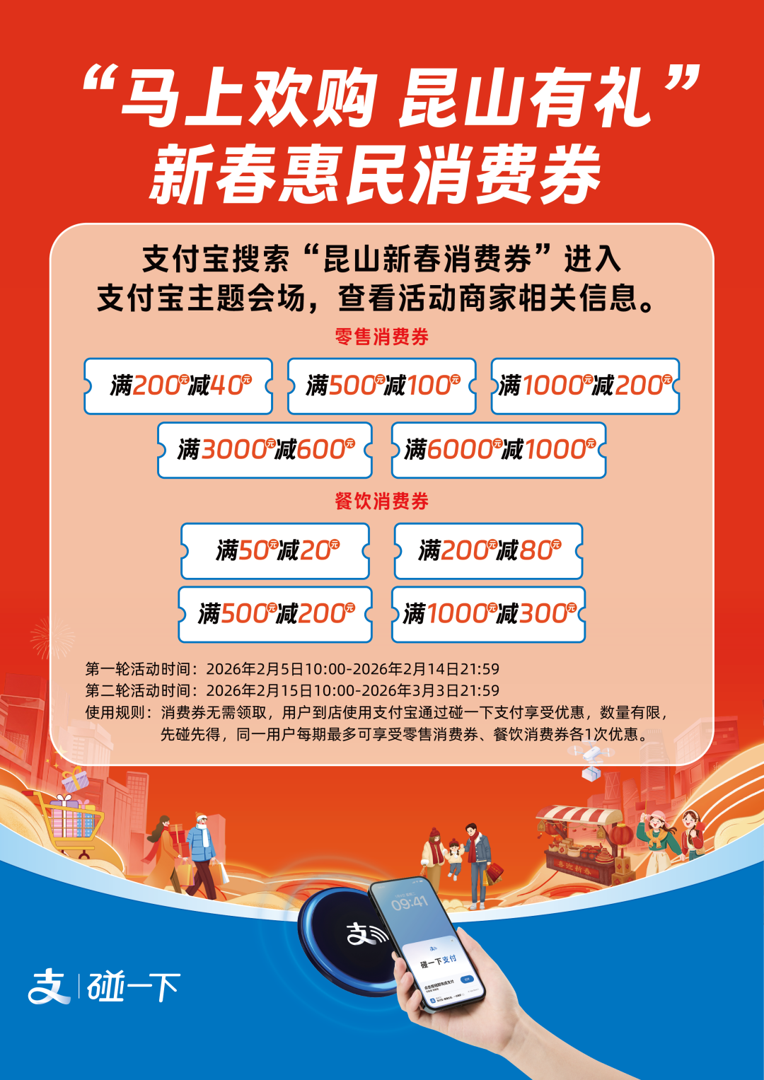 [百姓话题]乐购新春 | 昆山1000万新春惠民消费券,2月5日支付宝接棒宠粉! [复制链接]