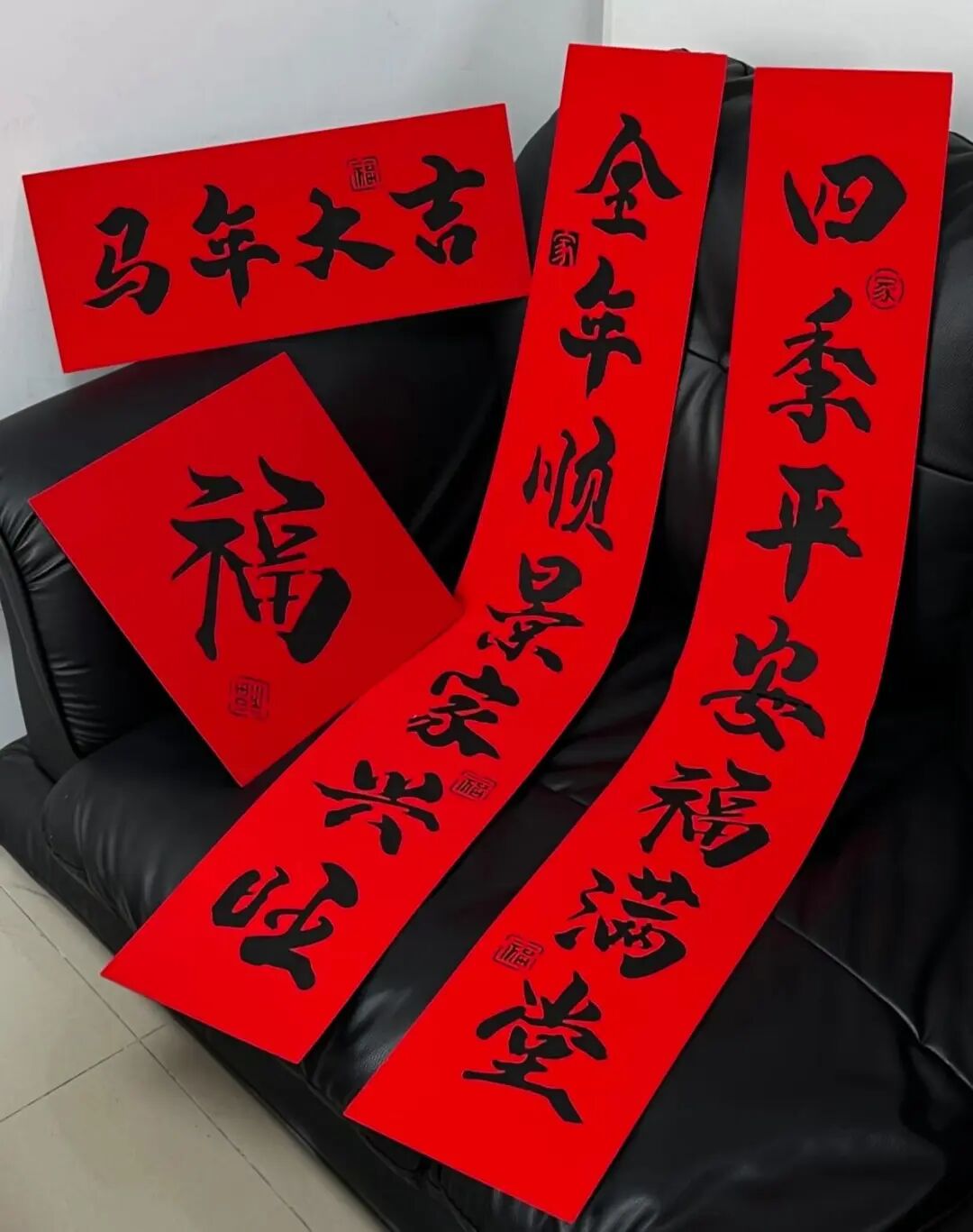 传统老一辈买对联,永远离不开“家和万事兴”、“万事如意”、“马年大吉”……