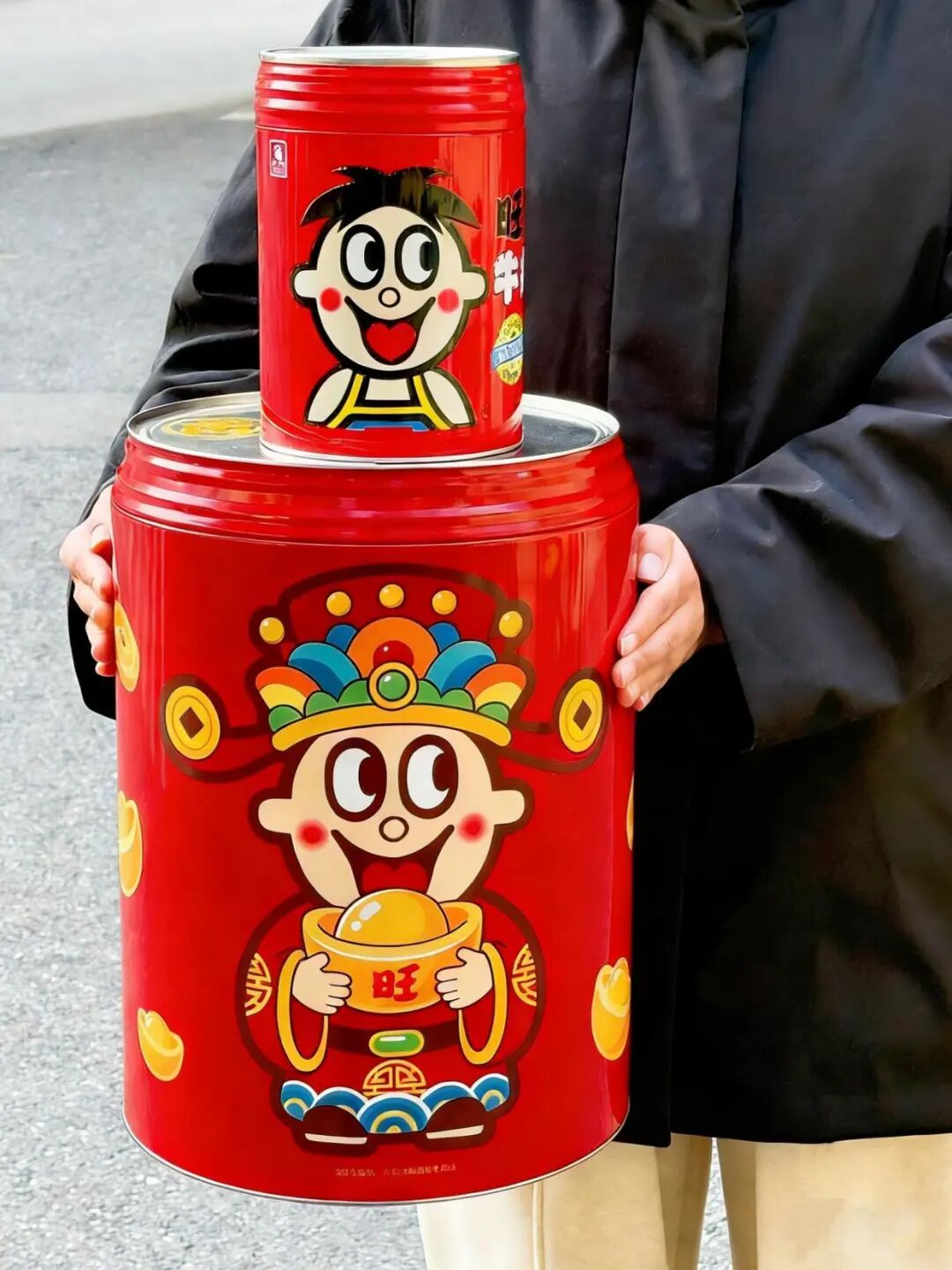 就像这个旺旺的巨型零食桶,哇塞,放在家里,哪个小朋友来看到不迷糊啊,送礼也挺有面儿。