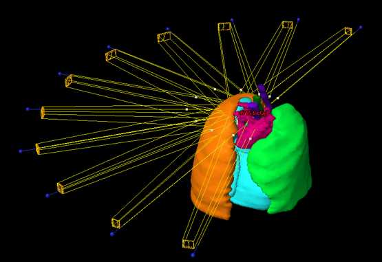 医生会联合多模态影像融合技术,配合AI自动勾画正常组织,精准识别肿瘤病灶;在CT或MRI图像上精确勾画肿瘤靶区及邻近的重要器官(如肺、心脏、脊髓等),并与物理师合作设计个体化的放疗计划,尽量降低正常组织所接受的辐射剂量。