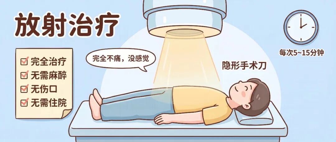 放疗虽被称为“隐形手术刀”,其本身并不会痛,治疗时患者没有任何感觉,既不需要麻醉,也不会留下伤口。