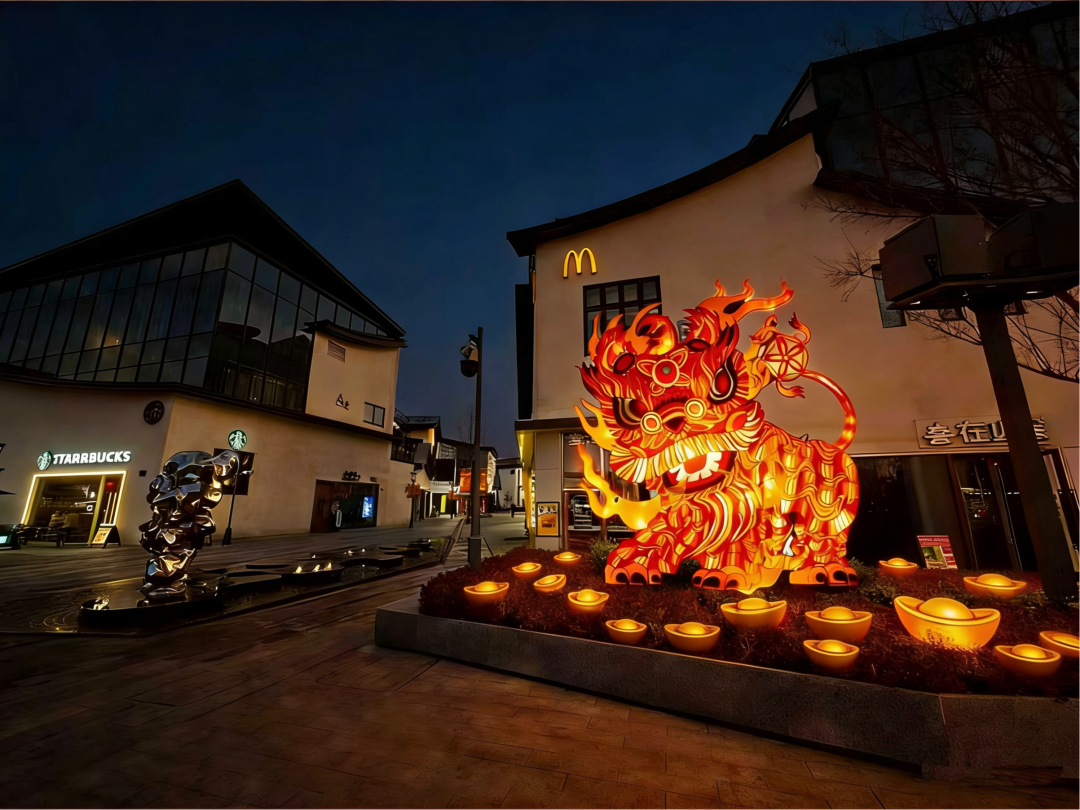 大西门入口片区灯景焕新,“火狮”红橙焰光流转,彰显昆山活力、激活文旅消费;“聚福大西门”纳福聚气,成为新春打卡焦点;坐落于大西门下沉式音乐广场的“马到福临”旋转木马融国风与童趣为一体,光影绝美,打卡或消费即可免费体验,转出全年好运。