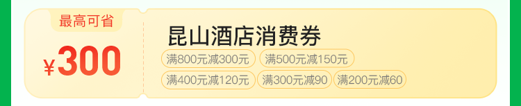 住宿券:满800元减300元、满500元减150元、满400元减120元、满300元减90元、满200元减60元。