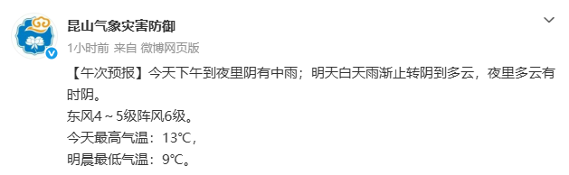 据昆山气象午次预报