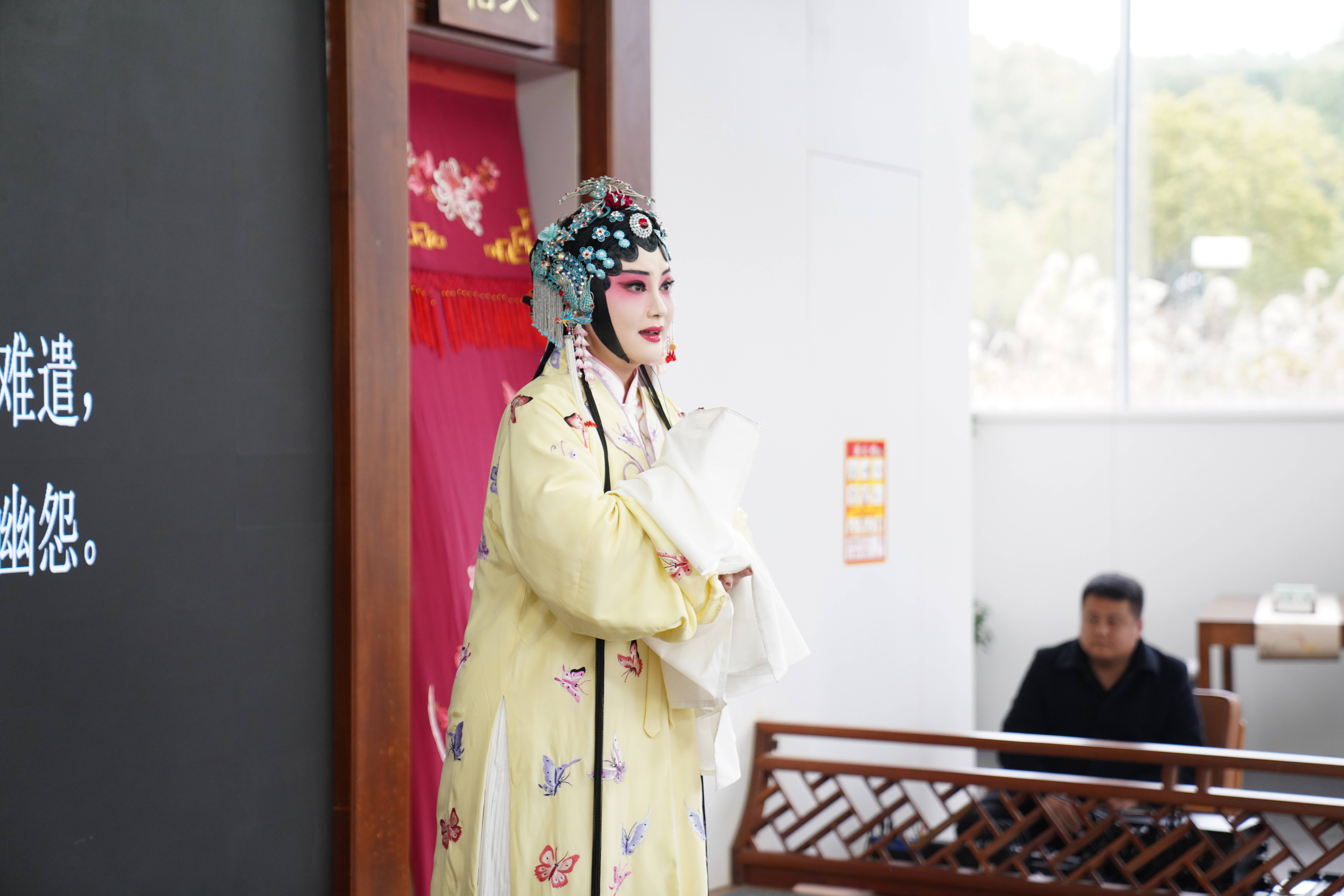 当日下午,博物馆内已是人头攒动。随着一阵婉转的笛声响起,昆曲《牡丹亭》的经典唱段在馆内悠然响起。杜丽娘扮演者一袭古装,水袖翩跹,轻启朱唇:“原来姹紫嫣红开遍,似这般都付与断井颓垣。”柔美的水磨腔与馆内悬挂的元宵灯火交相辉映,将观众瞬间带入“姹紫嫣红”的戏梦时空。演员的一颦一笑、一腔一调,引得在场观众屏息凝神,沉浸在穿越时光的古典韵味中。“元宵节在博物馆里看昆曲,感觉特别不一样,仿佛戏里戏外都是景,太有味道了。”带着家人前来游赏的市民张女士赞叹到。