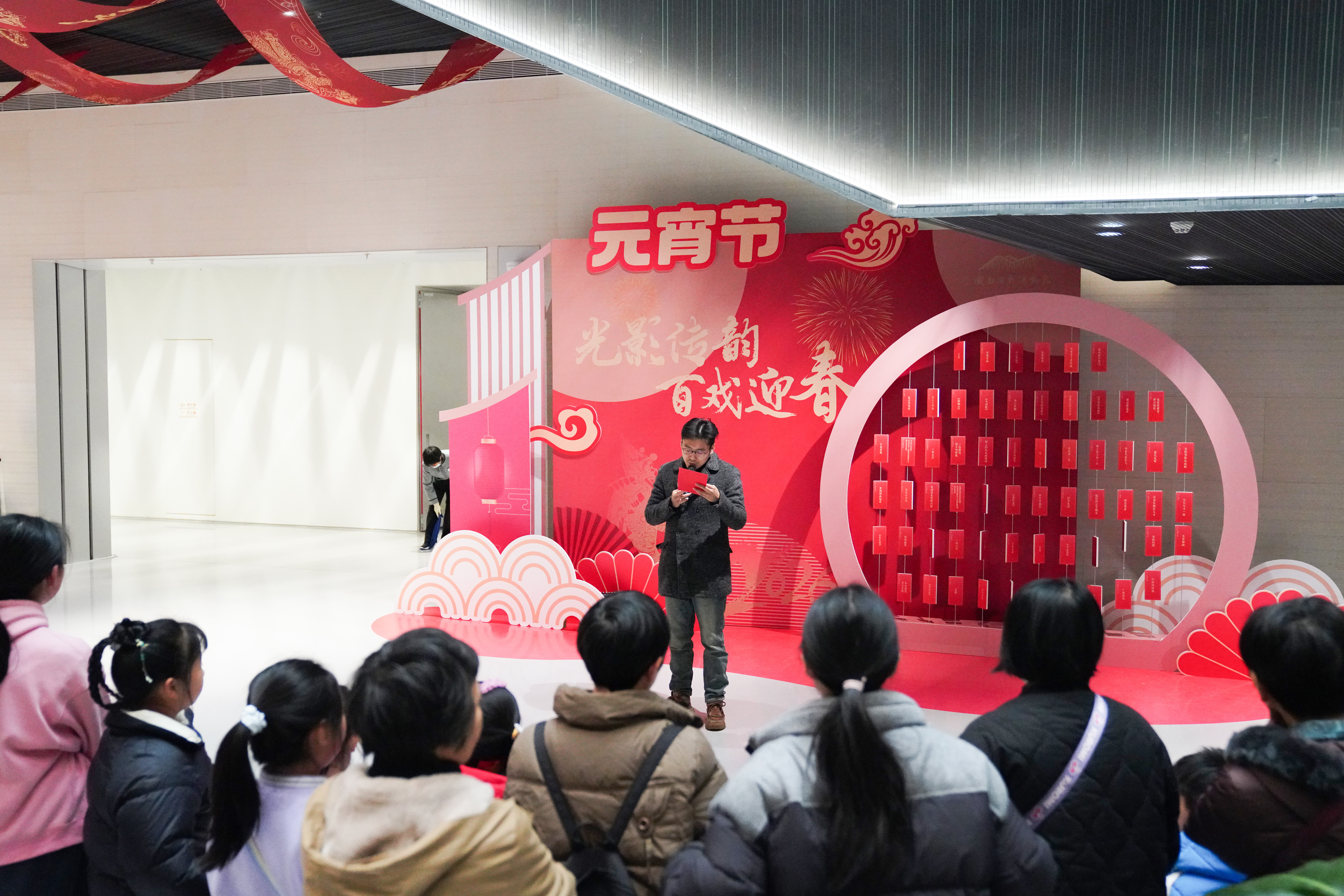 好戏连台,趣味亦盎然。元宵佳节自然少不了灯谜这一“压轴戏”。一盏盏精美的灯笼串起一道道“灯谜长廊”,数百条灯谜静候解人。谜面不仅有传统的字谜、成语谜,更有不少结合了戏曲知识、非遗元素的巧思之作。“‘芙蓉如面’——打一戏曲名词?”“我知道,是花脸!”一位年轻观众兴奋地扯下谜面,奔向兑奖处。大家或独自凝神思索,或三五成群热烈讨论,每当谜底揭晓,现场便爆发出一阵欢快的掌声。猜中者喜提博物馆文创小礼品,为节日增添了一份意外的惊喜。