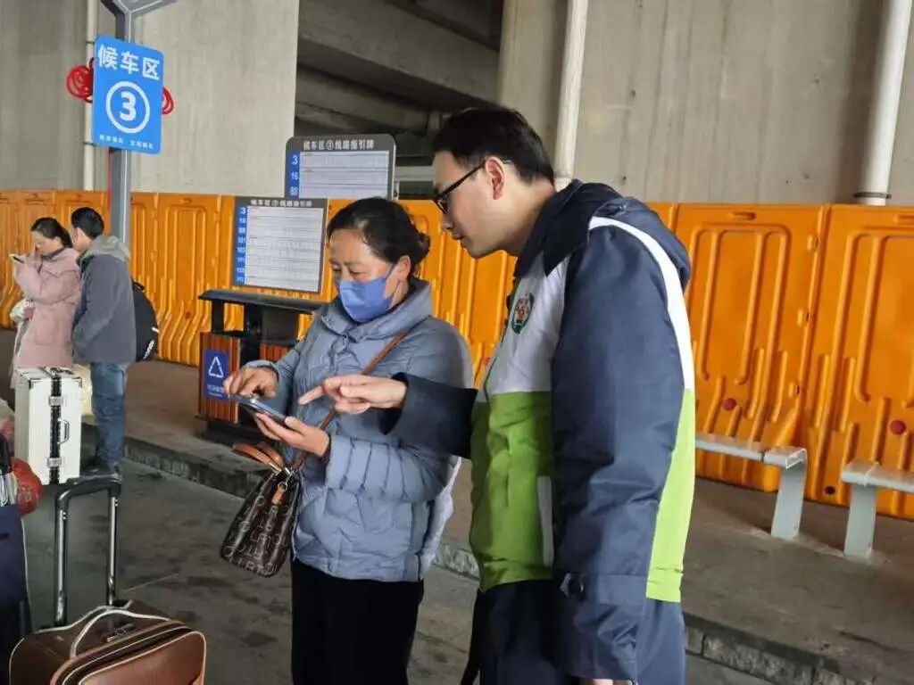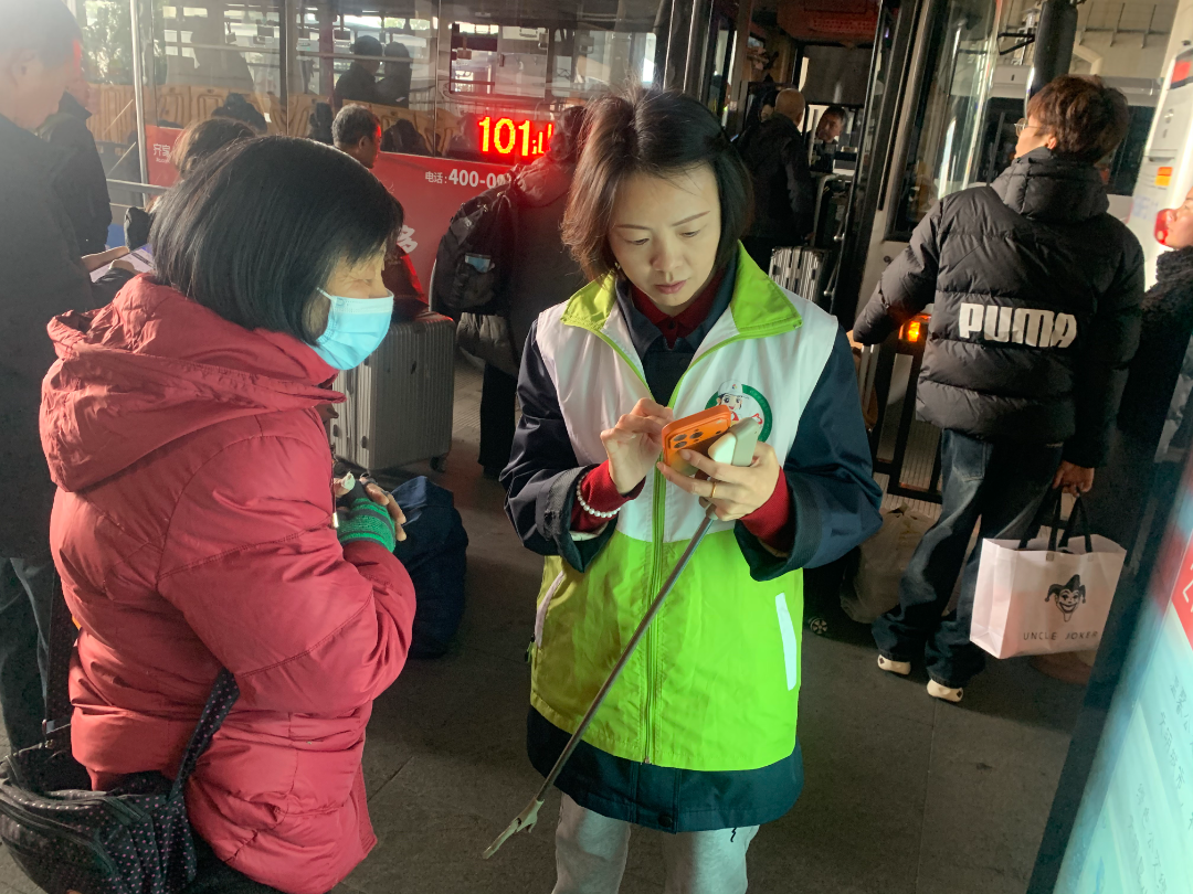 活动现场,志愿者们为过往乘客提供乘车咨询、线路指引、文明引导等服务,主动帮扶老弱病残孕等特殊乘客上下车、搬运行李。