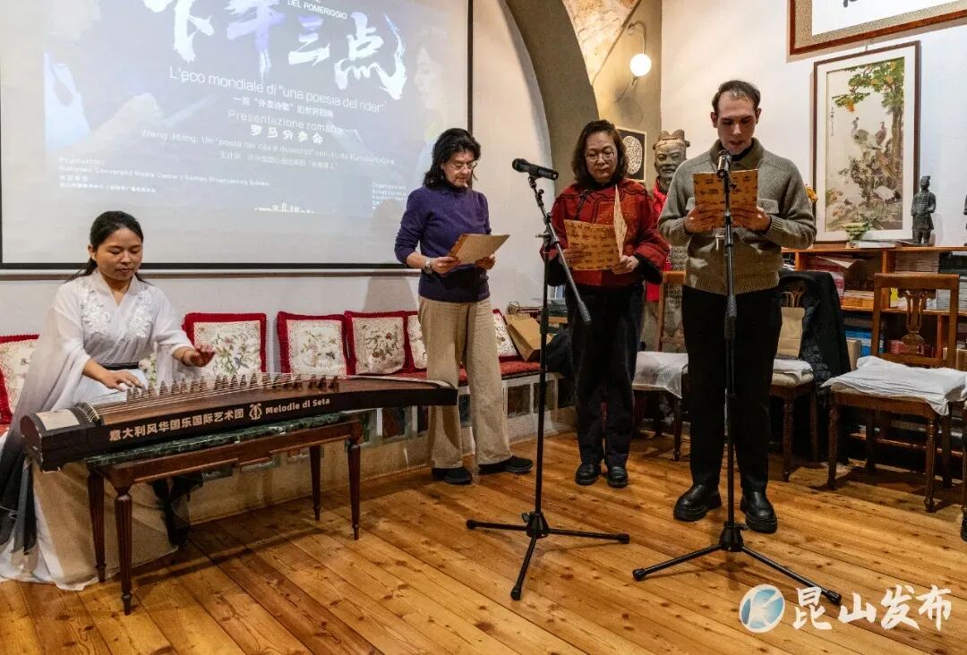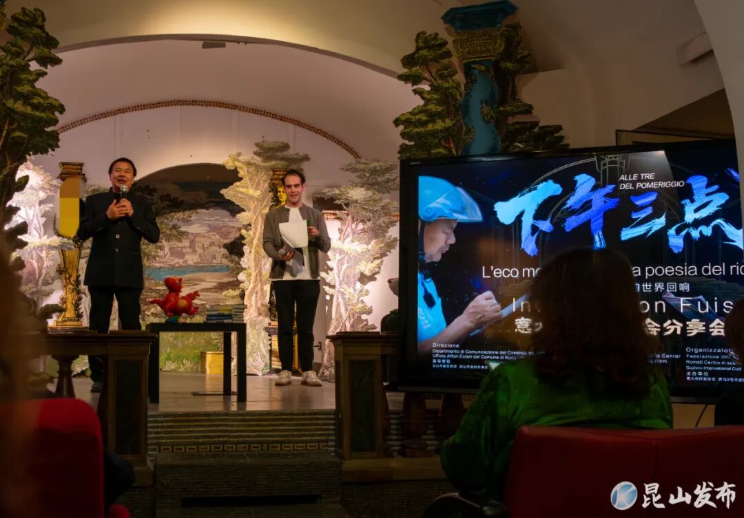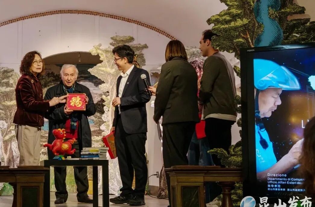 意大利作协主席Natale Antonio Rossi,中国驻意大利大使馆文化处参赞张凌霄,罗马大学东方学院副教授Alessandra Brezzi、Federica Casalin,罗马大学孔子学院中方院长杨慧玲等嘉宾参加活动。本次活动由意大利作家协会、罗马9号中意经济文化交流中心、苏州对外文化交流促进会主办。昆山市融媒体中心、苏州市广播电视总台联合采制推出此次新闻行动。