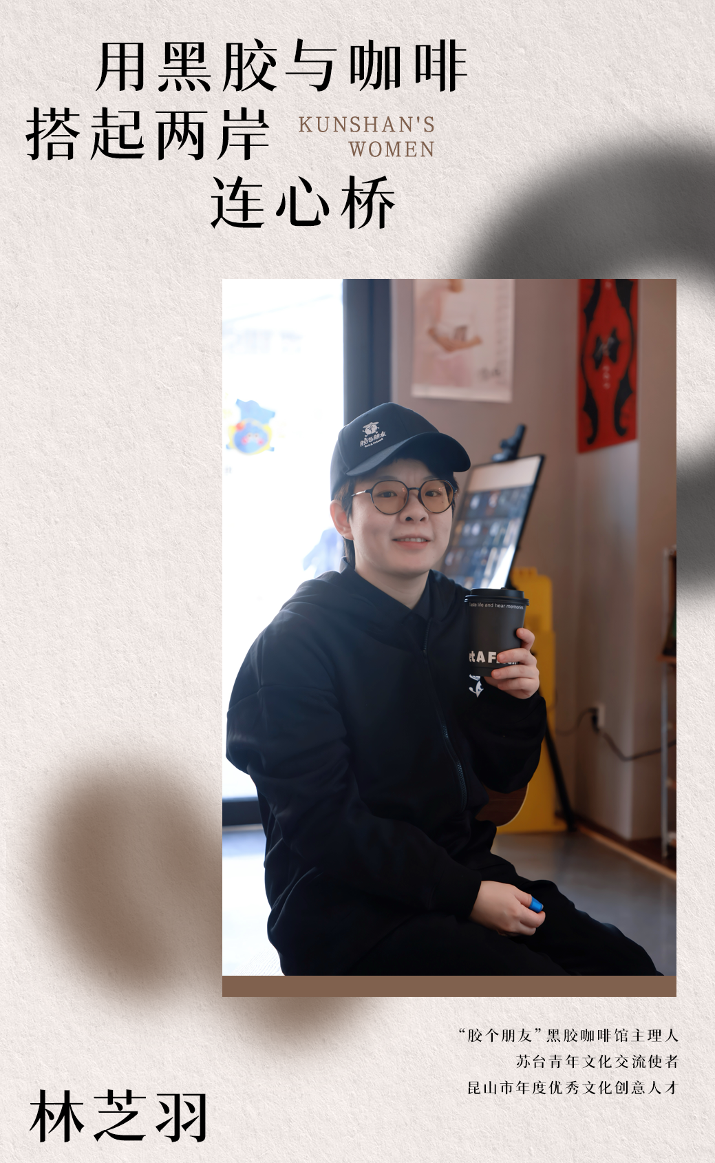 2021年,林芝羽在慧聚广场开设了台式奶茶首店,以珍珠奶茶解乡愁,却意外成为两岸青年交流的桥梁。今年,她在大西门开设了“胶个朋友”黑胶咖啡馆。从空间设计到品牌理念,都由她亲自操刀。